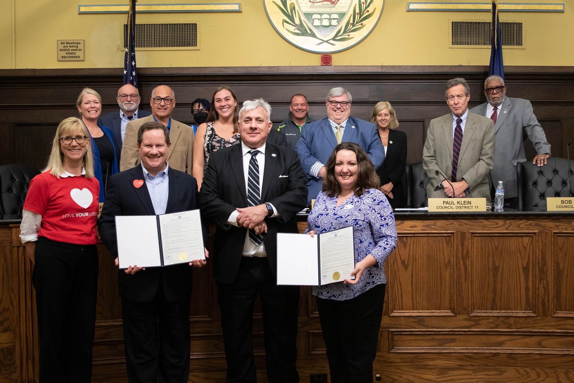 ACLA & CLP leadership receive a proclamation recognizing Love Your Library Month from Allegheny County Council.